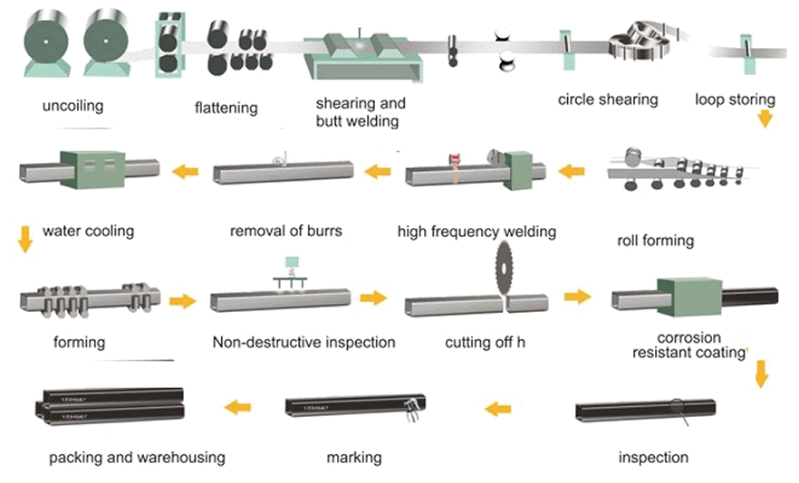 SS Square Pipes Manufacturing Process Chart